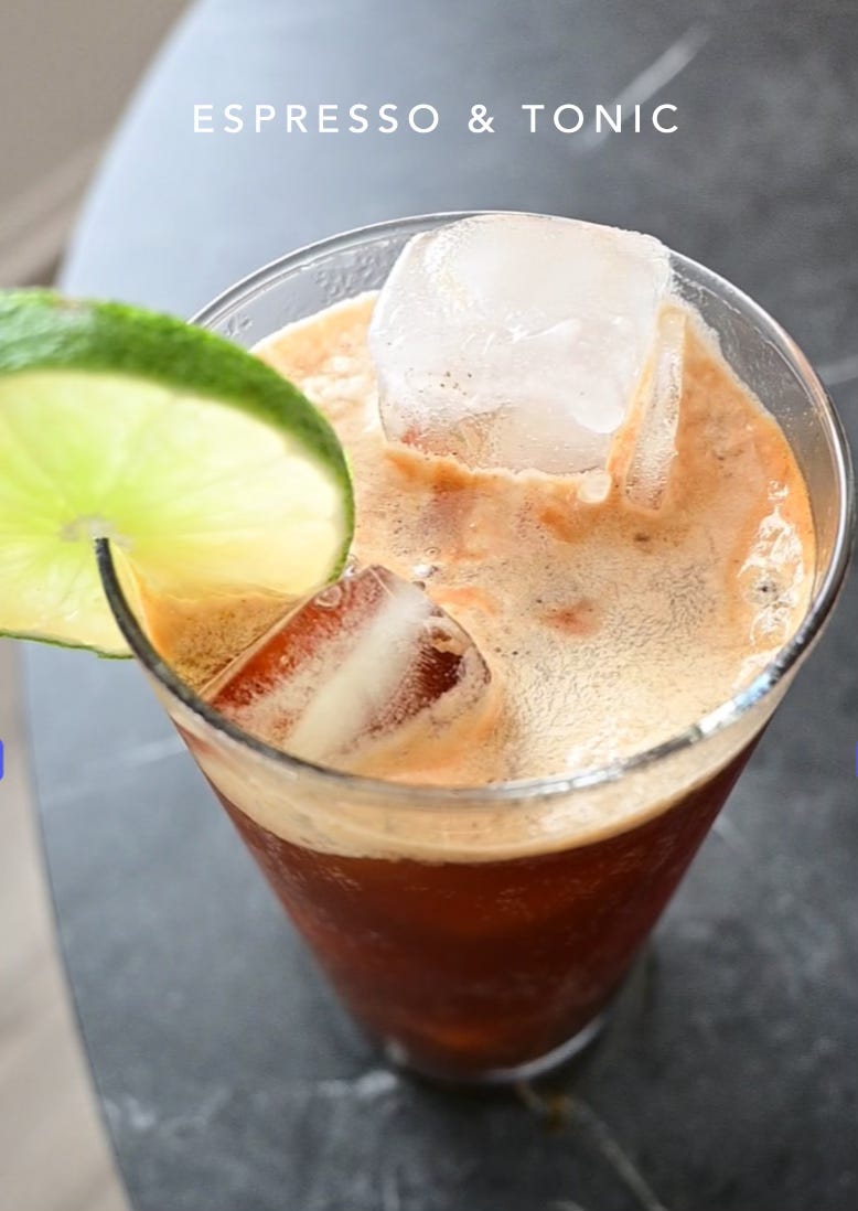 Going to the basics—a perfectly extracted shot of espresso softly poured over your favorite quinine-infused water.